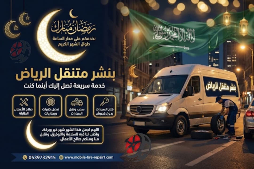 🚗 بنشر متنقل 24/7 خدمة سريعة واحترافية لإصلاح أي مشكلة في الإطارات أثناء تواجدك في أي مكان، سواء في الطريق أو في مكان وقوف السيارة. فريقنا مجهز بالكامل لتغيير الإطارات فورًا دون الحاجة للانتظار أو سحب السيارة للورشة.